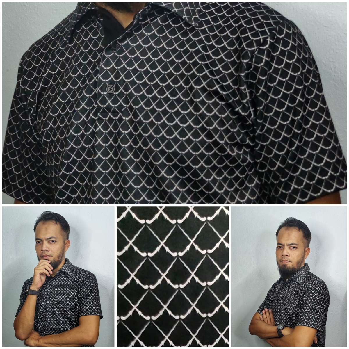 Baju Melayu Klasik dengan corak moden, lengan 3/4, dua kocek tampal, kolar Teluk Belanga, ada pesak (yang dimodenkan) dan kekek, longgar, kain cotton mix polyester. Tampil gaya klasik dan premium dengan corak moden dan mewah. Maklumat lanjut warna dan corak, ikuti media sosial kami. Klik bebutang di bawah laman ini.